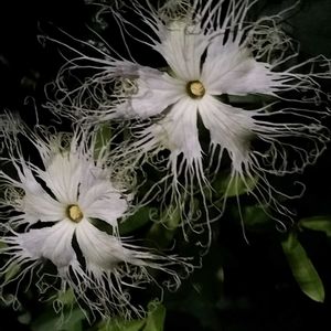 こんにちは🤗 今日も穏やかな秋晴れでしたね🍁🍂 今日のお花カラスウリ(烏瓜)❇️🤍💮🤍❇️ 今年の夏も夜な夜な人知れず、毎晩沢山咲き乱れていました✨😄