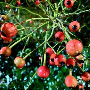 芝公園で雨に濡れてイキイキ 薔薇の実