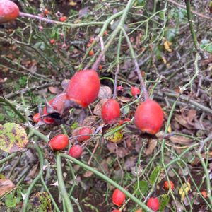 ローズヒップティーの原料となる薔薇の実ローズヒップ、収穫期をはるかに過ぎた今はこんな姿に。🤣🤭 (花フェスタ記念公園)