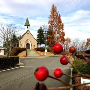 福島県 アンナガーデンの 聖アンナ教会とrose hip