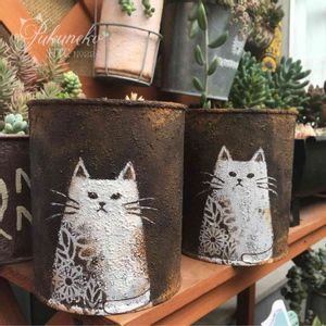 ゆるーい感じの 猫ちゃんのサビサビリメ缶🐱😄 出来ました🐈✨ と言いつつ、仕上げはまだ💦 大きめの缶だから、アエオさんとか、でっかい🌵とか似合いそう?☺️