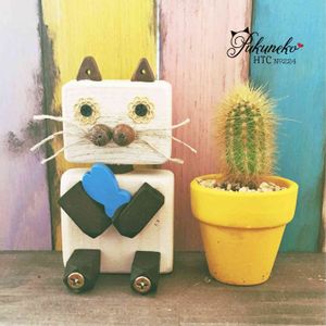 サボテンの日🌵 トトの日でもあるから、 木製にゃんこに、お魚持ってもらった〜😁🐱🐟♪