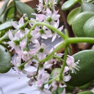 今日のお花 金のなる木🌿 お花咲き始めました♪ ピンク🌸です💕 嬉しいなぁ🎶🥹