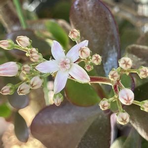 金の成る木が、 今シーズン花を初めて咲かせました🌸 薄ーーいピンクです。