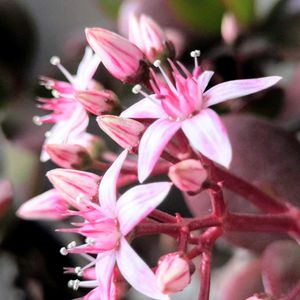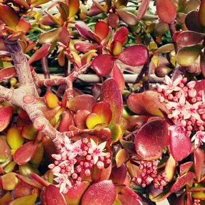 🍀🌻🌷💐🌺🌻🍀 🍀💛金のなる木💛🍀 💐満開になった“金のなる木”濃いピンクが 綺麗です 💐花言葉は(富)、(一攫千金)、(幸運を招く) (不老長寿)です 💐園芸上の名称は花月(カゲツ)です、英名 はdollar plant(ダラープラント)、money tree(マネーツリー)です 💐金のなる木はベンケイソウ科クラッスラ 属に属する植物です、乾燥、低温、多少 の日照不足に強い性質があリます 💐多肉質で光沢感のある葉と、小さくかわ いらしい花が魅力的です 💐11~2月頃は置き場所に注意し、できる だけ明るい室内に置き、肥料はやらず、 土は乾かし気味にすると花が咲き易くな ります 🍀🌻🌹💐🌺🌻🍀