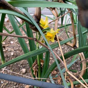 開花水仙第3段 黄房スイセン(ダト思う💦) 柿の木の根元に水仙の球根をたくさん植えてて、タグが消えもう名前がよくわかんなくなっちゃった😹😹😹 いいの✨ 綺麗だから\( ΦᆺΦ)/ 鉢植え水仙の中で原種系のペチコート水仙の白、🌼バルボコディウム モノフィラス🌼が咲いてたみたい💦 買った年は咲いたケド、その後何年も咲いてなかったから開花に気づかず悔しい😿 今日は寒かったですねぇ❄ 多肉ちゃんにもビニールや不織布をかけたケド、大丈夫かなぁ? 数が増え、暖冬気分で今年はスパルタ対応💦
