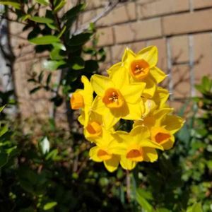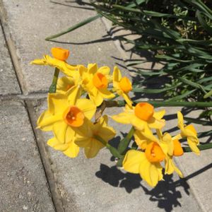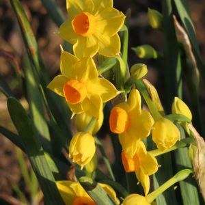 こんにちは~ 今日は風が強くて寒いですね。 「黄房水仙」 散策路沿いの畑、陽射しを浴びて美しく咲いていました。 撮影日 2021.2.8 以下、メモです。 黄房水仙(キブサスイセン)はヒガンバナ科の多年草で、日本水仙と同類の「房咲き水仙」の特徴を持つ。花茎は2.5~4cm、花被片は黄色、副花冠は濃黄色~橙色。花には芳香がある。花弁は広がるが反り返らない。
