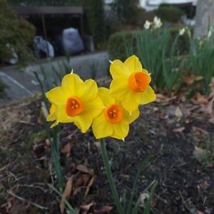 朝の通勤途中。 ボランティアの方が秋に植えた「黄房スイセン」が綺麗に咲き始めました。 パチリ