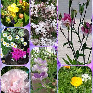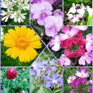 こんばんは✨🌛✨ 次々といろんなお花が咲き始めています✌️ 左上から時計回りにオルレア、ビオラ、マツバウンラン、バーベナ2色、ボリジ、ストロベリーキャンドル、春菊のお花です🤍❤️🩷💛💜 ビオラは先日、公園のお花の植え替えをした時、捨てるのはかわいそうなので、お手伝いしてくれた人たちと分けたものです、皆さん好きなお花を持ち帰ってくれたので、もう暫くは楽しませてくれそうです💞💞