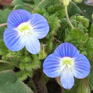 オオイヌノフグリ(大犬の陰嚢) 続編です😉 小さいながらも鮮やかなブルーの花、仲良し3兄弟です😃
