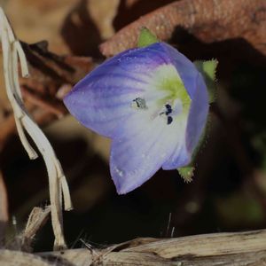 散策中に、通り道の畑の畦道に、オオイヌノフグリの花が咲いていました。