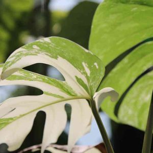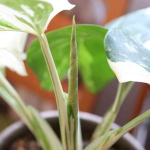 植え替え完了したモンステラさん😬 斑の入り方がかっこいい\(^o^)/ でもこの春に新しく出てきた葉っぱはほとんどが白い部分でちょっと心配・・・