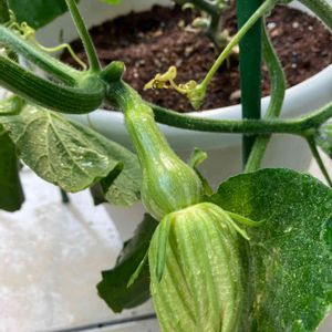 バターナッツカボチャ✨ やっっっと受粉出来ました🥲 最後の種です。 葉が小さいので不安ですが収穫まで伴走していきます💪