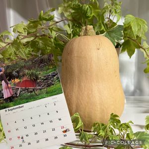 先日 道の駅で見つけた バターナッツかぼちゃ🎃 しばらく キッチンのオブジェに 飾っておこう👍💕 濃厚で 美味しいスープが出来そう👏👏👏 昨年末に飾ったへデラが 大きく 育ちました🤗 今日から もう9月になってしまいました😆 今月も よろしくお願いします🙏💕 🏷️ カレンダーの日🗓️に ターシャさんとコーギーで 参加させて下さい💖🤭