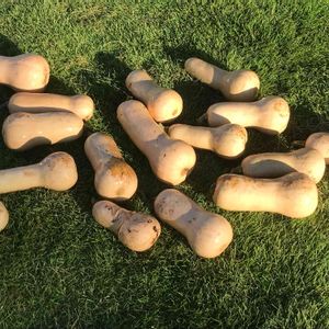 食べた種からのバターナッツかぼちゃ、無事収穫まで漕ぎ着けました👍✨ 7月はよく花が咲いて、早起きして受粉させたけど、もちろん全部は成功せず😅 途中からは雄花ばっかりになって、エディブルフラワーとして、天ぷらで沢山食べました🌼 その後は、うどん粉病で、あれよあれよという間に葉っぱがなくなって💦 結果、1株につき1〜2個大きくなった感じ🎃 左下のしんちゃんはツルが完全に枯れてたから収穫してみた。 ちなみに、うちの父はおまえがカボチャと思って育ててるの、瓢箪やで…って可哀想な子見る目で言うから、こういう種類なのよ、って教えたけど、まだ疑ってる(笑)