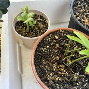 やっと涼しくなってきましたね。ということで手持ち株のチェックをしていましたが、特に今年発芽株が大打撃を受けてしまいました。🥲 秋に一定数残れば配布できればと思ってましたが、半数近くが駄目になっており、難しい状況ですかね。 (最終的に70株程度残れば御の字という状況で生存率50%以下は過去最低ですね。) 既存株の方はかなり葉が枯れる個体が出ていまして、特にオーレア系はもう遮光100%じゃないと駄目ですかねぇ。 pic1はネーム株を置いているエリアで雅3株、シャルウイ4株、クレオ2株、アフロ、ソレイユ、蜃気楼といった感じですが、今年お迎えした株もさほどダメージは受けてない様子。このエリアは最高気温36度越え、最低気温も27度台という厳しい日が続きましたが、なんとか持ちこたえてくれました。 個人的には最低気温がここまで高いのは初めてで、夜間は屋外用のサーキュレーターを購入して風を送る羽目に。 pic2は今年世界展に出したクレオパトラさん。なんと一部が腐っていたので緊急に植替え。該当部分は全て取って殺菌剤を吹いておいて、根腐れもしていたので整理して、一回り小さな鉢に植替え。 この個体でこういう状況になるのは初めてで、やはり夏場の水やり難しいなと思った次第。 あと、株を割るか迷ったのですが、一旦見送りました。クレオパトラの大株化は目標の一つでこの個体は多花傾向もあるので、割らずに大きくしたいんですよね。