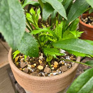 おはようございます☀ 16℃ クリスマスローズの様子 葉焼けもすごいし キレイでもない投稿ですが記録用として😊 夏越し後、葉が残ってる鉢も新芽🌱がすごい子がいます😅 写してないですがまだ ベビー苗も入れて倍ぐらいの鉢があって自分でも少し引きました笑 花芽になってくれることを祈りながら株元のお手入れをしました🥰 今日忘れて腕まくりして素手で お手入れしたら 葉っぱが擦れてあたった所がピリピリしてきました😅 それすら楽しいんだけど笑 みなさん手袋して 肌はガードしてお手入れしましょうね〜😊