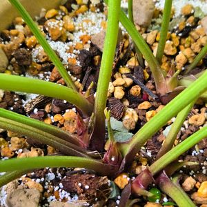 えー、午前中にクリローの植え替え作業をやっていたのですが、中々エグいものを見つけたので、pic2,3でご紹介します。(閲覧注意です) いきなり見せるわけにも、という事で昨シーズン咲いたピンクシャルさん丸弁のpicを1枚目に貼っておきます。 いやー、この花は綺麗でかつ可愛い、若泉さんのご子息(2代目)が剣弁を丸弁に寄せてようとしているそうで、この株もその系統らしいです。 プレゼント株で家で2年かけて苗から育てているので、今年の夏も普通に乗り越えて、新芽出してモリモリ成長しております。😀 pic2 クレオパトラ2号さん、根の9割腐っておりました。いや、よくこれで枯れなかったな事案ですよ。しかも根腐れかなり進んでるのに葉が枯れ込んでない。凄く我慢できる子なんでしょうか?そう言えば3年放置してるなと開けてみたら絶句しましたよ。 とりあえず鉢サイズを7→4号鉢に変更、とにかく根を出させて延命させないと。😅 pic3 自称グロスレッドさんですが、うーん、これブラックデスですかね。😱 何故発症したか全く不明。うちにいる感染株からは隔離してるのですが、不意に出てくるのは怖いですね。 まぁ、ブラックデスはどの株も感染していて、株が弱ると発症する説ありますが、ホントにそうかもと思ってしまいますね。 これ、ほぼ確だと思いますが、もう少し様子を見て、デス判定したら全て即廃棄します。(用土もプラ鉢も) しかし今年の夏越しはかなり失敗したので、また来年どうするか考えないとですねぇ。