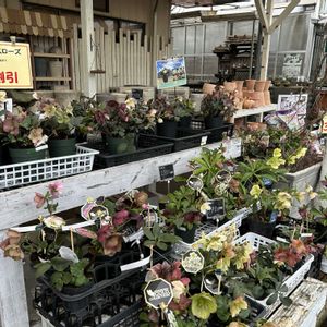 今日はもう一枚 山口のほうへお出かけしたので寄ってみたガーデンマルシェさん クリスマスローズが30パーオフ になってました 童仙房さんがほとんどでした 小さめの株でしたが昔よりお手頃な価格になった気がしますね グリーンリップ利休系の開花予定株も数鉢ありました ノドから手がでかけたけど もうお金がないので退散笑 😂