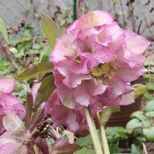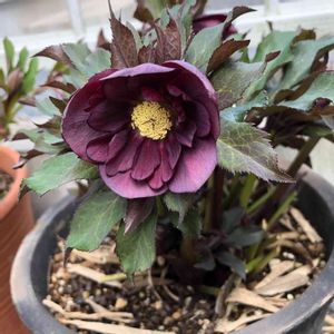 5年前、クリスマスローズを育ててみようと思い立ってこの子ともう一つを連れ帰りました✨ もう一つは同じような色でシングル🌸 そっちの子もそろそろ咲きそうです❤️