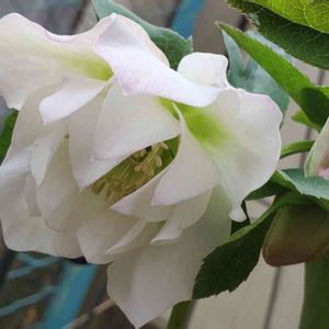 連投です🎶 零れ種のクリスマスローズ💕 スポット無し😄 クレマチス アーマンディーの株元から咲き出しています😳🤭