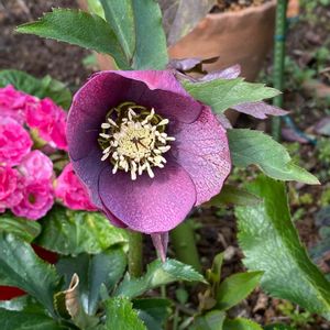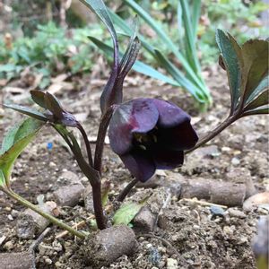 去年季節外れに見切り品になってたクリスマスローズ✨🌸✨ 黒色と書いてあり、うちには無い色だったのでお迎えしたのでした 😊👍 なので、初対面〜🎶 ホントに真っ黒だわ❣️ 中のお顔も真っ暗でよくわからないです🤣