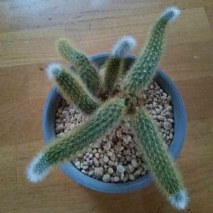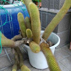 10年以上前に購入した丸いサボテンの下に3センチ位の大きさでした。丸いサボテンは行方知れず。ほったらかしで、何もせず御免なさい。今年は雨がよく当たった為か立派に延びている