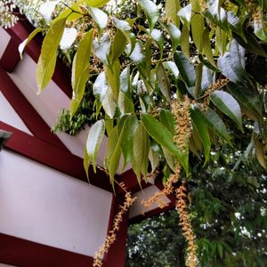 5月から6月にかけて遠目に見る山に🌳モコモコした黄色の樹木が際立ってる 皆さんのとこにも見えるかな… どうやら、スダジイの雄花が新しく出した枝に咲いてるようだ🌿💛強い香りがあり、虫を引き寄せる ドングリは、食べれるみたい 神社の境内に終盤の雄花を見つけた!