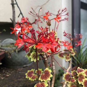 きれいに咲いてくれました🥰 もみじ葉ゼラニウムは葉の鑑賞がメインらしいですが、お花も真っ赤なもみじのようですごくかわいいです💕 だいぶ前に花開いていましたが なかなか投稿できずでした💦 奥にもう一つと、写っていない手前にも 開きそうな蕾があります😊 いろいろあって結局温室を設置したので 夜はその中で過ごしてもらいます。 少しは暖かいかな☺️