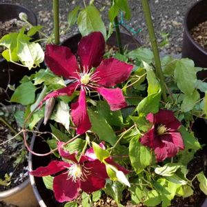 クレマチスのニオベです。 最近、贈答品でしか出回ってない印象なので手っ取り早く購入しました。 ほどくのが大変でした。