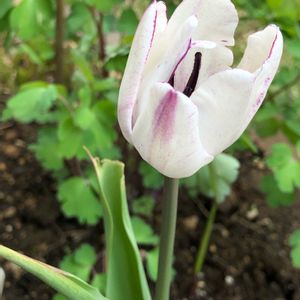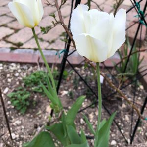 白いお花シリーズ🌼3-3 今年の芽出し球根から直ぐに 植えられなく💦咲いてから慌てて 今日植えました😅申し訳ない 名無し🌷シャーリーならいいな〜