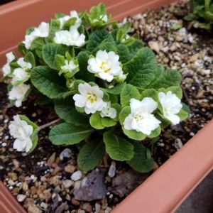 プリムローズが満開です。 何故か白だけベゴニアみたいな咲き方になってます。