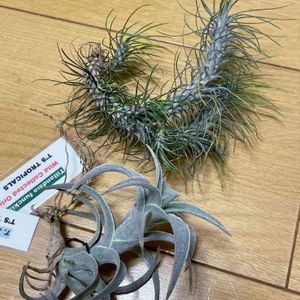 チランジア(エアプランツ)がたくさん入荷しました! こちらは6点セット。 マグヌシアーヌ L トリコロール L カプトメドウーサL T.Seleriana (セレリアR) T.Fucksii ver Gracilis (フクシー グラシリスL) T.Puruinosa colombia (プルイノーサ コロンビアS) 各種1点の6点セットになります。 ¥3,300(税込) それぞれ個体差有りますが、オンラインショップからは状態のいいものから順に発送します。
