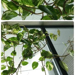 窓づたいに 天井まで登ったポトス🌿 なぜか、先の方が葉っぱが大きい…