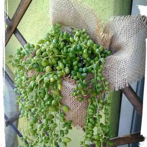 根元はモリモリに新芽を出して、 下にもグングン伸びて1mはあるかな? この先、お手入れはどうしたらいいの~!?😲💦 100円ショップのチビ籠に麻布を敷いて植え替えました✨