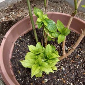 紫陽花の新芽がにょきにょき🌱✨ 下から沢山生えて来たけど、このままで良いのかな❓❓ 黄緑の新芽は若々しくて、元気いっぱい(*´∀`)♪