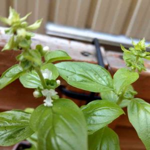 差し芽から成長中のバジルに花が🌼 可愛いけど… チョッキン✂してさようなら👋 鑑賞用のバジルだから花が咲いてもいいんだけど、何となく切ってしまった(^_^;)
