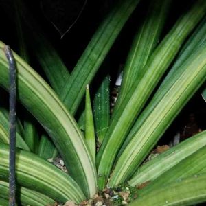 夜の園芸🎶 綺麗な斑入りのsanseveria 60センチ程で葉っぱは硬質 名前が分からないです(^_^;)
