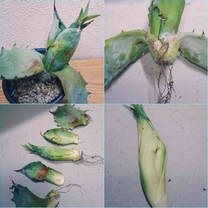 このアガベ コロラータも病気ぽい です〰️😫 一回水耕にしたら 根が出たので鉢植えに したけどやっぱりダメ みたいです! 今回はタケノコにして もう一度水耕チャレンジします‼️