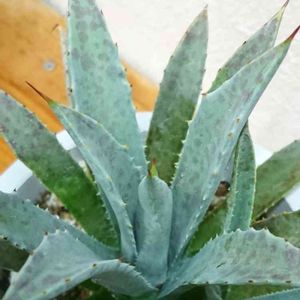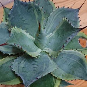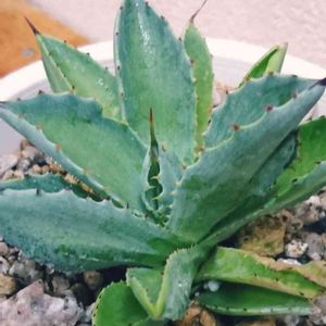 数年前にホムセンからの 救出アガベ オーレアの特長細葉が いい感じになって きました❗🙆
