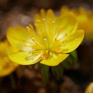 キバナセツブンソウ 別名: ヨウシュセツブンソウ セイヨウセツブンソ キンポウゲ科の耐寒性多年草 南ヨーロッパ原産で、光沢のある黄花を上向きに咲かせる。 いろいろな品種が出回っているようです。 最近植物園でよく見られますよね♬ 草丈は低く、5~10㎝程度。 花径は3㎝ほど。 花の名は、黄色い花がセツブンソウに似ていることから名づけられたそうです。 花弁は退化して筒状の黄色い小さな蜜腺になっています。 花弁に見える黄色いのは萼片です。 セツブンソウとは可憐さが違いました。 一瞬フクジュソウかと思ったほど! 蜜腺もセツブンソウのY字の可愛いものとは違いますね!