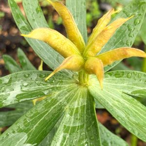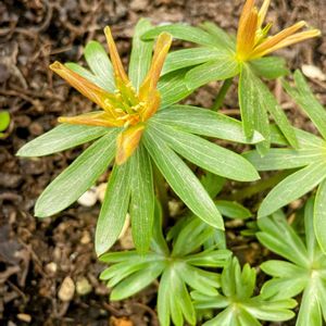 キバナセツブンソウ (黄花節分草) もう少しで 開きます・・😌 西洋種は、上向きで 花開くんですね・・・💕💕 🏷ちっちゃいものクラブ