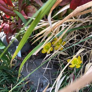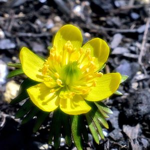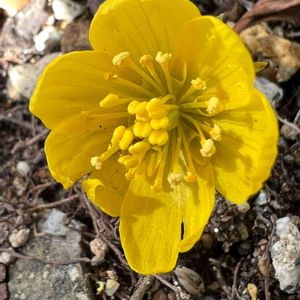 小さな黄金色の花 数年前友達から来たお花です。 今年はたった一輪🥰 お名前忘れてしまいました キバナセツブンソウだとわかりました。