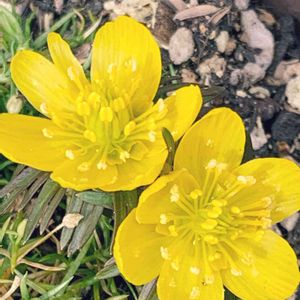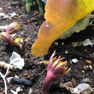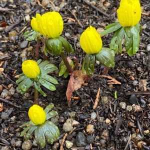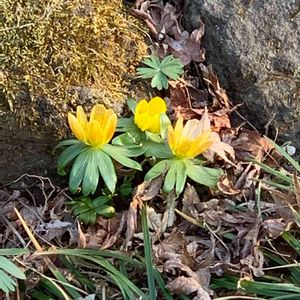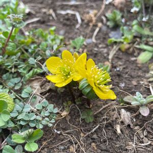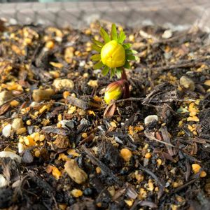 公園の花壇にて。 キバナセツブンソウ(木花節分草) 学名: Eranthis hyemalis かなと😅 少しずつお花が咲き始めました🎶