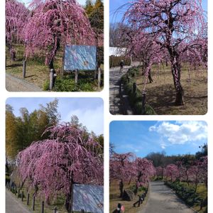 名古屋市農業センター 見事なしだれ梅が咲いていました。 白いしだれ梅は、まだ蕾です。