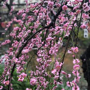 今朝、雨の日の枝垂れうめ もう古木のせいか てっぺん辺りの花数が 少くなって淋しいです|ω`) でも毎年楽しみな花木❃です☺︎ 部外者投稿させてください...♪*゚
