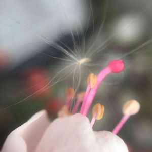 フクシアプーニー^_^沢山の蕾からまた咲き始めました😊 その先に、何かの種が引っかかってます😅
