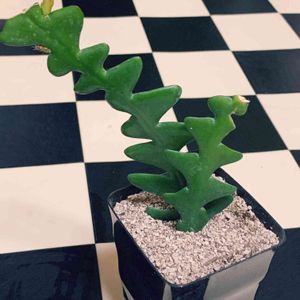 こんばんは🌃 *エピフィルム・アングリガー*こと。 フィッシュボーン・カクタスくん🌵です。 このジグザグが、かわいいです💕 こんなおチビちゃんだと…ダメですが…💦 実は、月下美人の仲間で、 美しいお花🌼が咲くそうです😊 見てみたいですね~😉