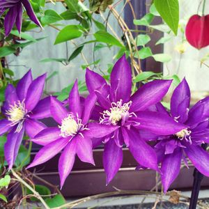 2年目のクレマチス テッセン𓂃𓂂ꕤ*.゚ 今年も沢山咲いてくれました ✌︎( ◜ᴗ◝)✌︎ 小庭が賑やかです .𖤣𖠿𖤣𖥧𖥣。𖥧