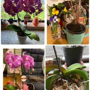 2年前、娘の高校合格祝いにいただいた胡蝶蘭、実は昨年お亡くなりになりそうになり、昨年冬に水耕栽培にしました なんとか奇跡の復活を遂げ、今は素焼き鉢に水苔で根っこを伸ばしてます(右下) 一番危ない時期には写真撮ってなかったのですが、、 よくぞここまで復活しました✨ 来年には花が咲くといいなぁ